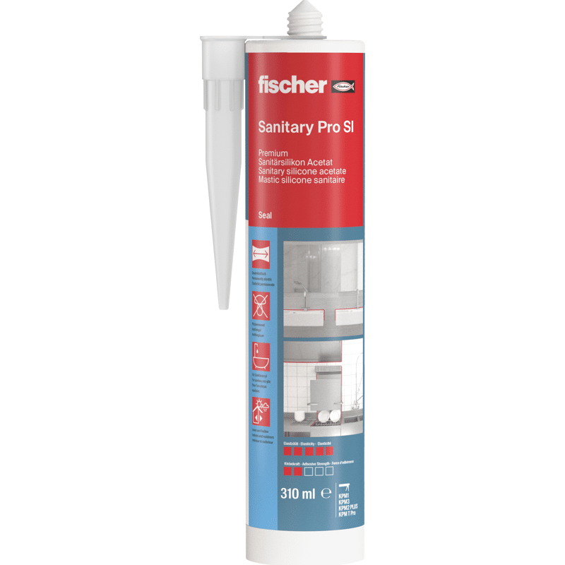 Das hochwertige fischer Sanitärsilicon DSSA TP zur Verwendung bei Eck-, Bewegungs- und Anschlussfugen im Sanitär- und Küchenbereich. Farbe: transparent. Ermöglicht ein leichtes Verarbeiten und Glätten und sorgt für einen zügigen Arbeitsfortschritt. Durch die Dehnfähigkeit von 25 % ist DSSA sehr gut geeignet für stark beanspruchte Dehnfugen, sehr gute Haftung und hohe Abriebfestigkeit.