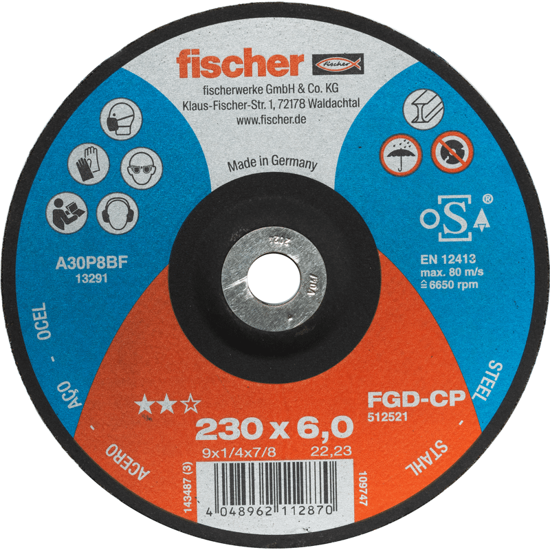Die fischer Schruppscheibe FGD-CP ist eine effiziente Schleifscheibe für das angenehme Schleifen von harten Materialien, wie Stahl. Durch die hohe Lebensdauer der Trennscheibe sind weniger Werkzeugwechsel notwendig. Die spezielle Deckschicht der Schruppscheibe reduziert Randausbrüche. Die weiche Scheibe eignet sich ideal für das Egalisieren von Schweißnähten sowie für den Ecken- und Kantenschliff.