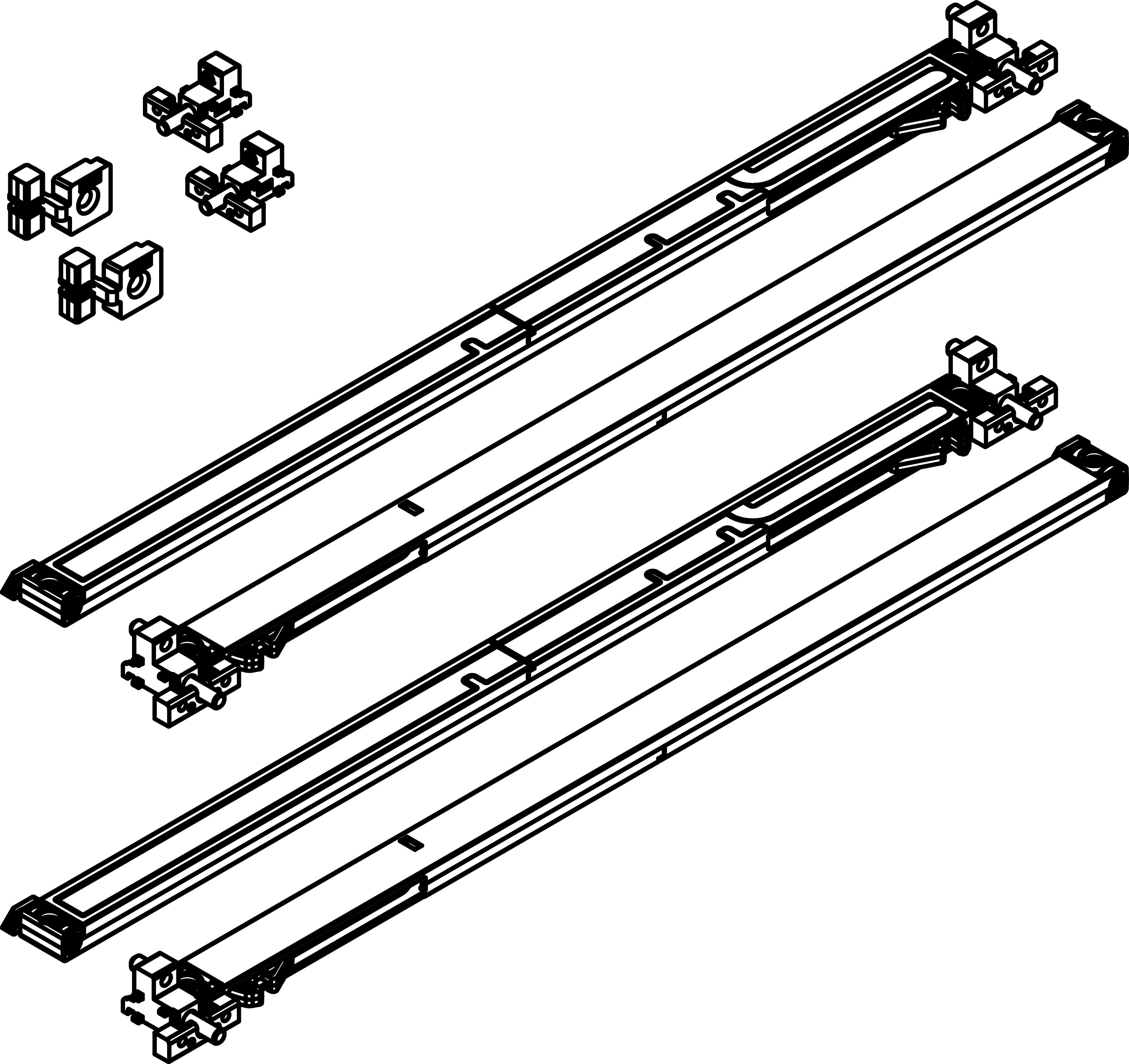 Beschlag für 2-3 unten laufende Holztüren (19/25 mm) bis 50 kg, mit aufgeschraubter