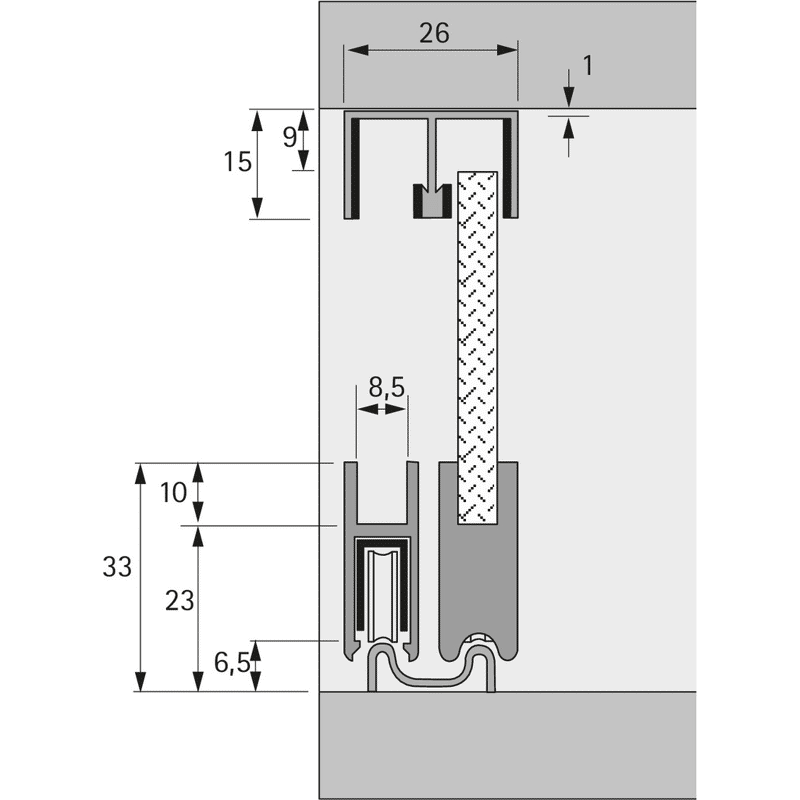 MB-Laufprofil, unten, L 2500mm, 25kg, SlideLine 97, 76478, silber, eloxiert