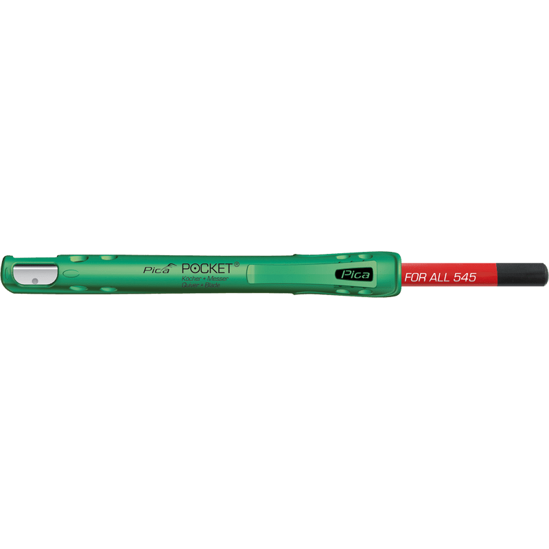 Robuster Stiftköcher: hält alle dicken Holzstifte, egal ob Oval, Flachoval, Black-edge, Dreikant oder Sechskant, egal welche Länge – sogar den kleinsten Stummel. Seine geniale Klemmfunktion fixiert den Holzstift stets griffbereit. Man konzentriert sich auf seine Arbeit und findet den Stift blind.