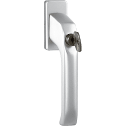 Aluminium Fenstergriff abschließbar, eckige Kunststoff-Rosette mit Abdeckkappe in der Grifffarbe und verdeckten Verschraubungen
