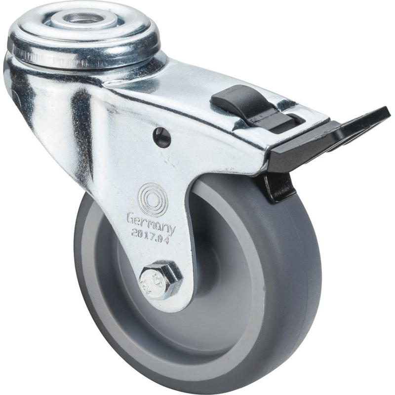 Transportgeräterolle, Lenrolle mit Rückenloch mit Totalfeststeller