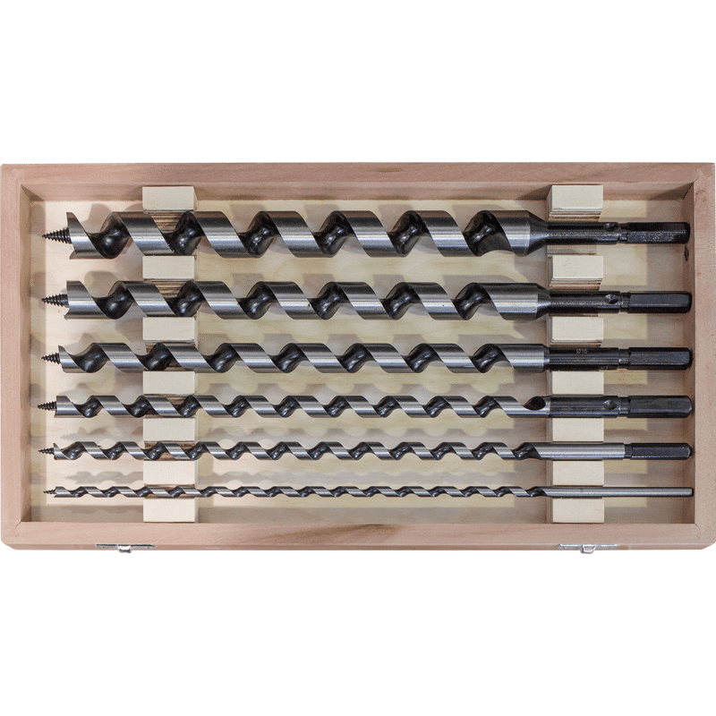 Der Schlangenbohrer eignet sich für Zimmereien, um Balken und Sparren durchzubohren. Dank der Gewindespitze mit Vorschneider entstehen Schnittkanten ohne Ausrisse. Dank praktischem Set im Holzkasten sind alle nötigen Bohrer parat.