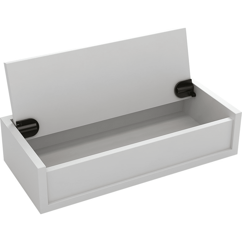 Scharnier mit eingebautem Dämpfer verhindert ein Zuschlagen der Klappe. Montage in Vertiefung. Mit Farbkennzeichnung am Rand zur Modellunterscheidung.