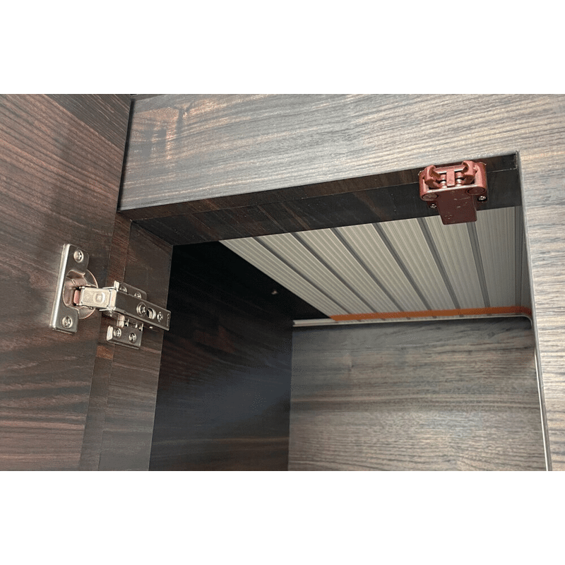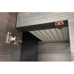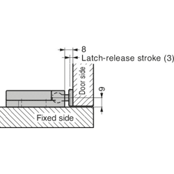 Ein Druck zum Öffnen/Schließen ermöglicht den Einsatz von Griffen und Griffmuscheln. Die Gegenplatte kann sich nach der Montage in einem Bereich mit einem Durchmesser von 3 mm bewegen, was eine einfache Einstellung ermöglicht.