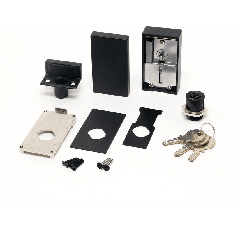 Gestaltet für die Verwendung mit dem GS-GH50 für die Design-Koordination. Dicker Edelstahl-Riegel für zusätzliche Sicherheit. Die Schlüssel sind grübchenförmig und umkehrbar. Schlüssel-Nummer kann ohne Austausch des Zylinders geändert werden. (Einfaches Schlüsselwechselsystem). Eine Abdeckung verbirgt das Schlüsselloch. Die Frontplatte kann als Griff zum Öffnen der Tür verwendet werden. Die einzige Bohrung, die für den Schrank erforderlich ist, ist ein rundes Loch. Das macht die Installation sehr schnell. Der Schlüssel kann nur in verriegelter Position abgezogen werden.