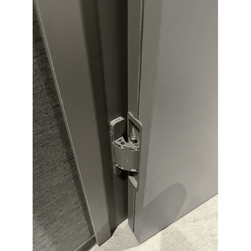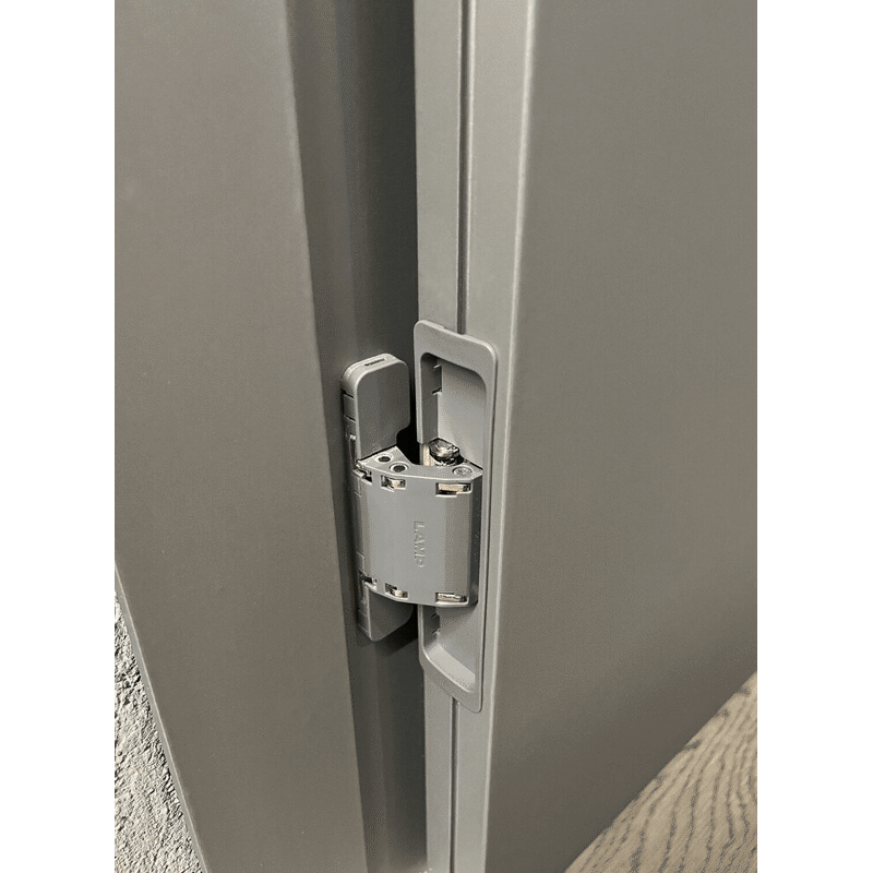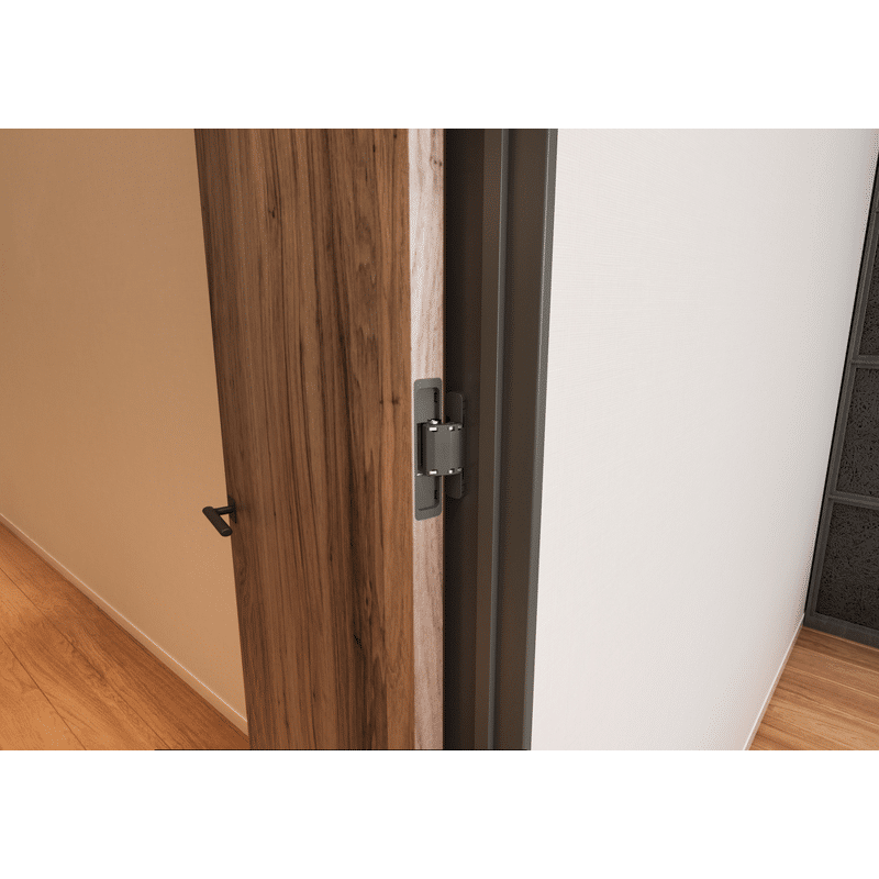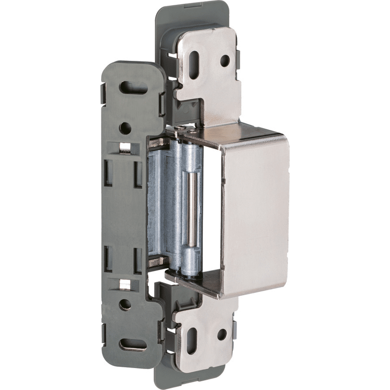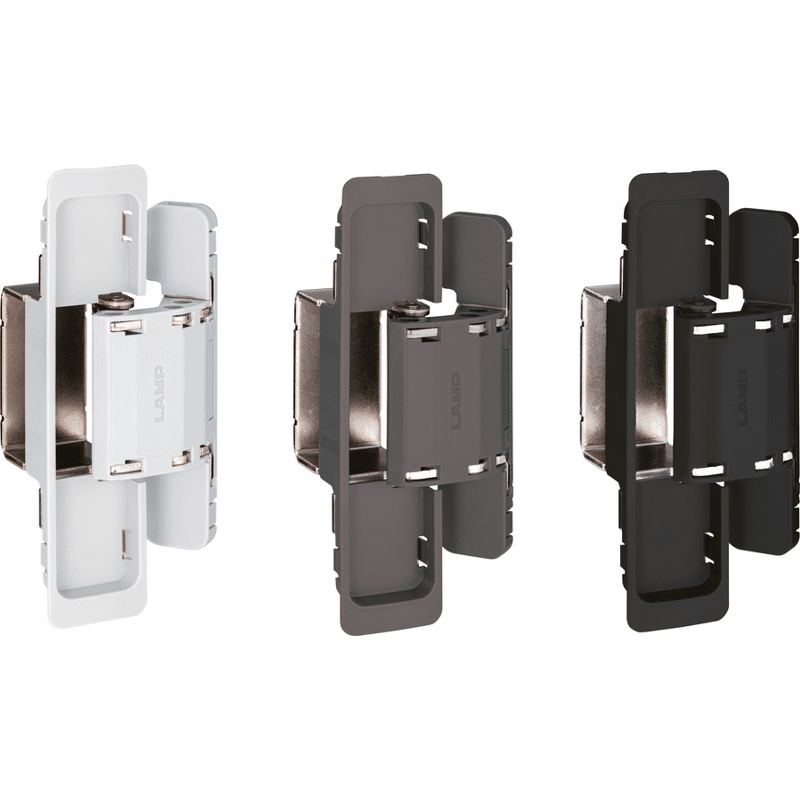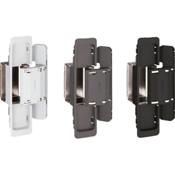 Verdecktes Scharnier für unsichtbaren Anschlag und 3-D Verstellung. Mit Rahmenseitiger Montage zum Anschrauben.