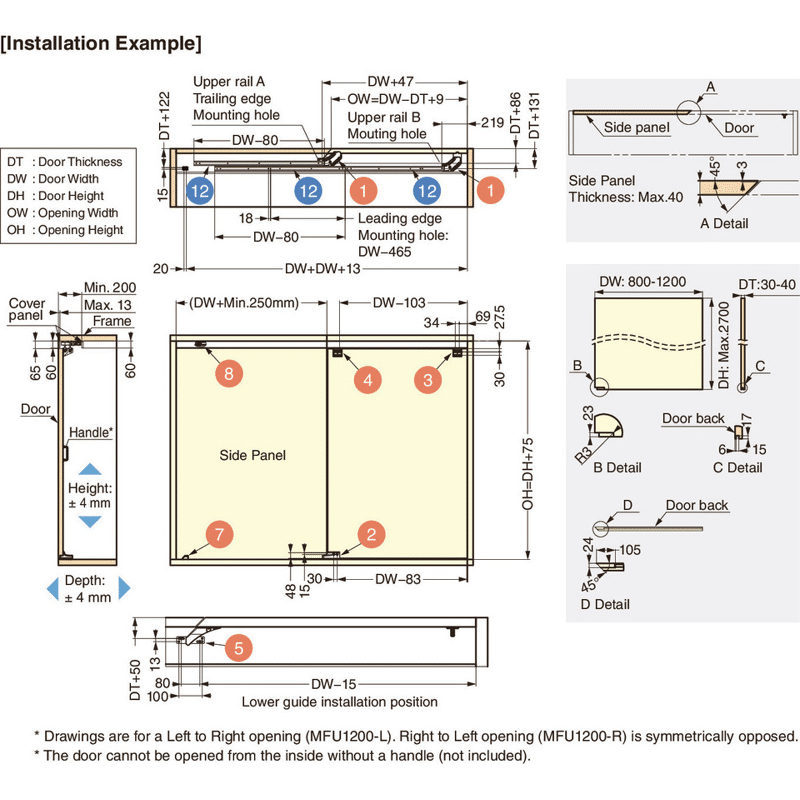 Schließer-Set zum flächenbündigen Schiebetürsystem MFU1200